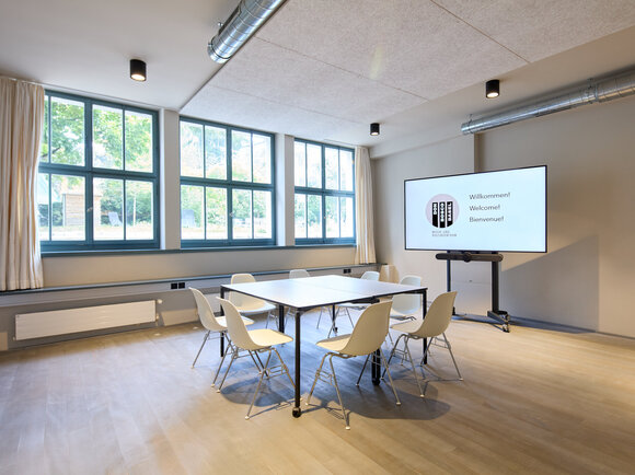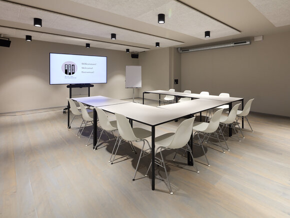 Im Paul Sacher Saal können Sie Licht-, Ton- und Videotechnik der neuesten Generation für Ihren Anlass einsetzen oder auch ganz schlicht mit Tageslicht arbeiten. In den kleineren Räumen steht ein grosser mobiler Videoscreen für Videokonferenzen oder Präsentationen zu Verfügung, daneben dimmbares Licht und nach Wunsch auch eine Tonanlage.