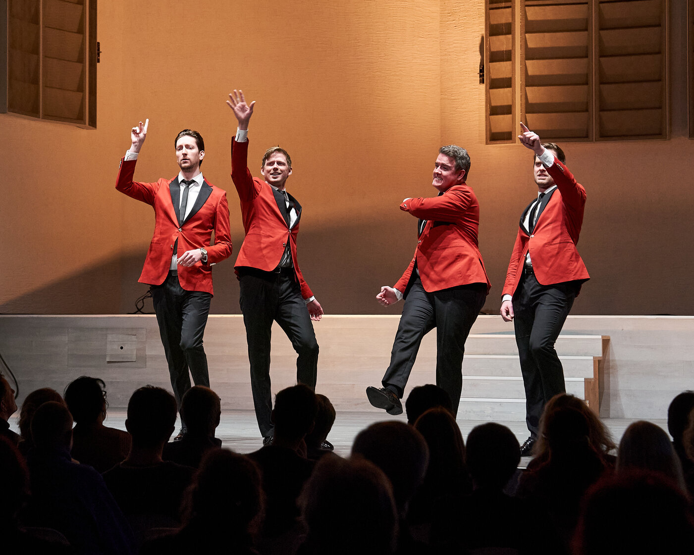 Ringmasters: Die Barbershop-Weltmeister aus Stockholm entführen das Publikum in eine neue Welt voller starker und vollkommener Harmonien, erstmals auch mit deutschen Songs wie «mein kleiner grüner Kaktus» oder «über den Wolken». Der Titel sagt alles: «Good Vibrations» bedeutet gute Schwingungen - und das sowohl in der Musik als auch beim Publikum, im legendären satten Barbershop-Sound