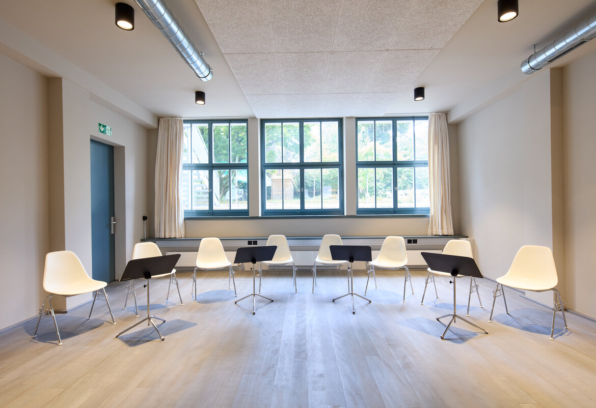 Als Ergänzung zu den Proberäumen bietet das Studio 2 optimale Bedingungen für Register- und Stimmenproben oder für Ihre Kammermusikbesetzung. Mit knapp 40 Quadratmeter dient das Studio 2 auch als Rückzugsort für kleinere Besetzungen vor dem Konzert.